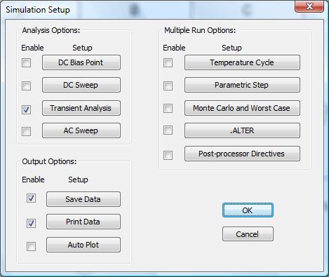 TopSpice offers both an easy to use interface for beginners and maximum flexibility for expert SPICE users. Most simulation analysis commands can be specified by selecting menu options. Experienced SPICE users also have the option of entering commands in text form directly on the schematic drawing or a separate command file.