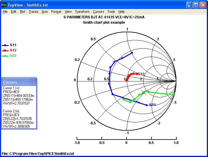 TopView interactive graphical SPICE post-processor program to plot and analyze SPICE output data features:
